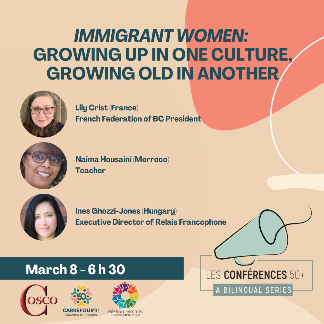 If you are a woman over 50 or if you are interested in issues related to cultural intersectionality and age, this conference is for you. Join us for an hour of exciting discussions, deep reflections, and stimulating discoveries.