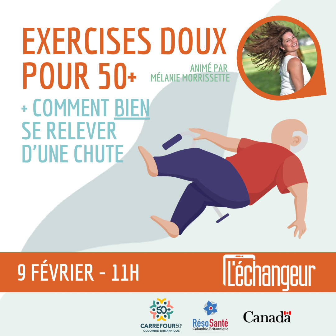 On bouge ensemble!DESCRIPTION On bouge ensemble pour notre santé globale! Nous ferons des échauffements sur la chaise et debout. On utilisera la chaise pour des exercises d’équilibre et le mur pour d’autres exercices. Aujourd'hui,on apprendra aussi comment bien se relever d'une chute. Procurez-vous 2 petites bouteilles d’eau pour des poids. Nous travaillerons les abdominaux sur la chaise et finirons par des étirements. |
