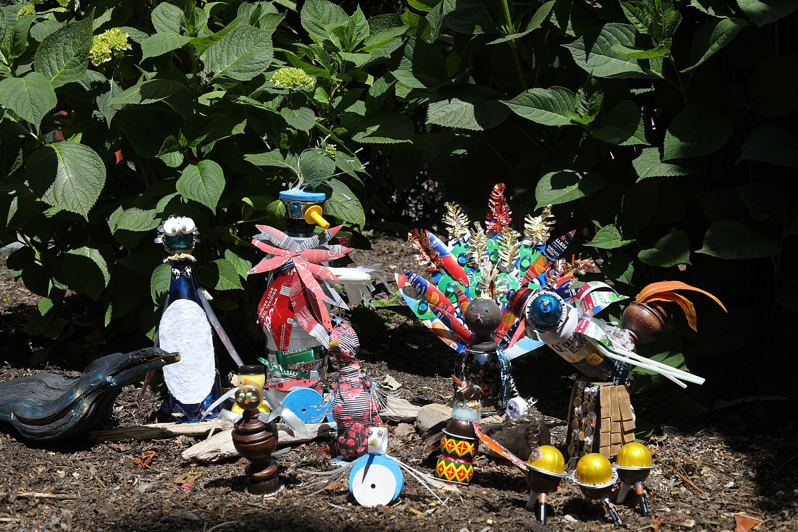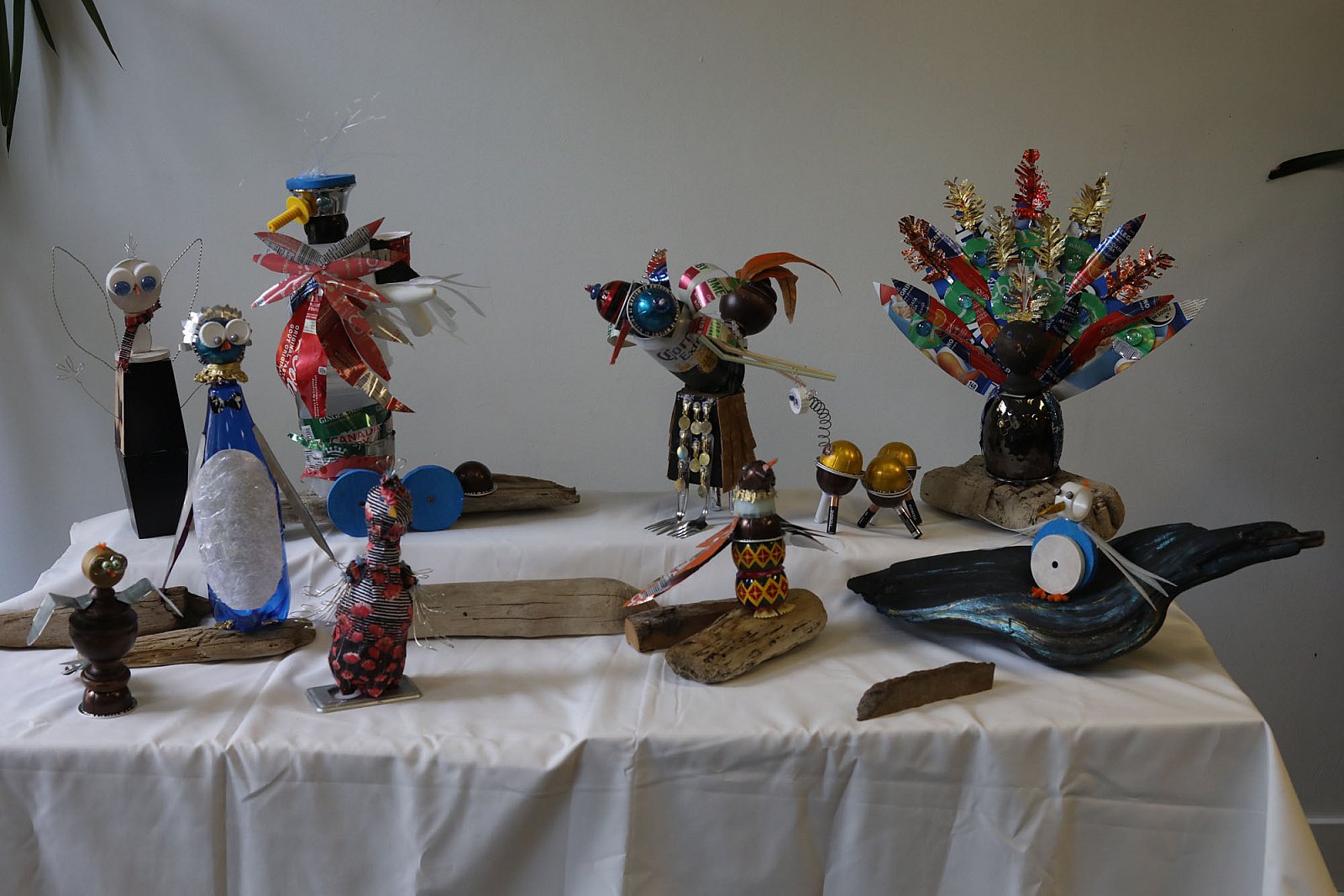 L’objectif de cette réalisation est la relecture des matériaux. Ensemble, nous avons passé plusieurs semaines à manipuler nos matériaux pour en faire une transformation artistique. Du recyclage avec humour, en bonne compagnie et bonne humeur. La < re-création > dans un cadre récréatif!